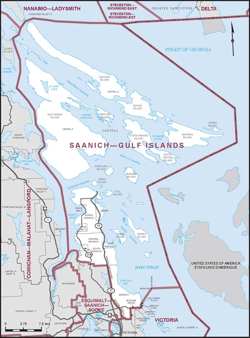 Saanich–Gulf Islands – Limites actuelles