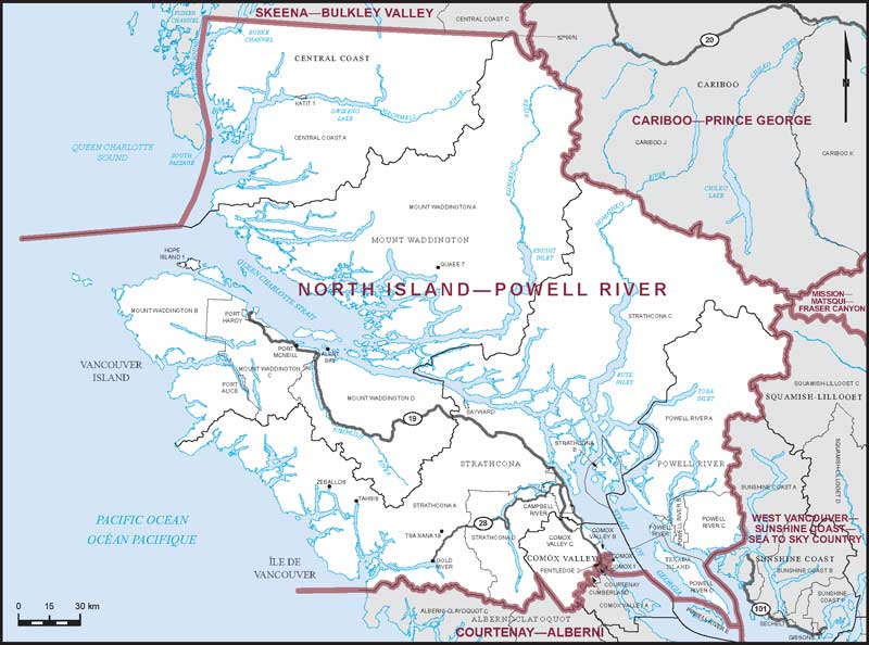 - a) les districts régionaux de Mount Waddington et de Strathcona;