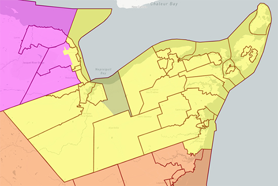 Conversely, the traditionally French-majority seats of Acadie–Bathurst and Madawaska–Restigouche needed only minor changes.