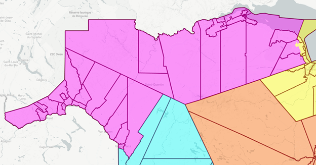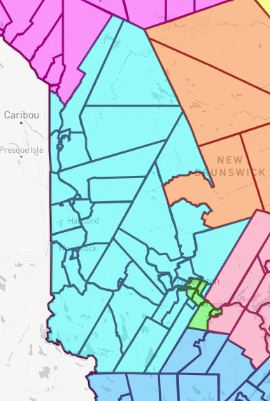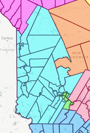 Tobique–Mactaquac extends south and east and is renamed Tobique–York to accommodate its expansion. Similarly, New Brunswick Southwest shifts slightly and is renamed Kennebecasis–St. Croix.