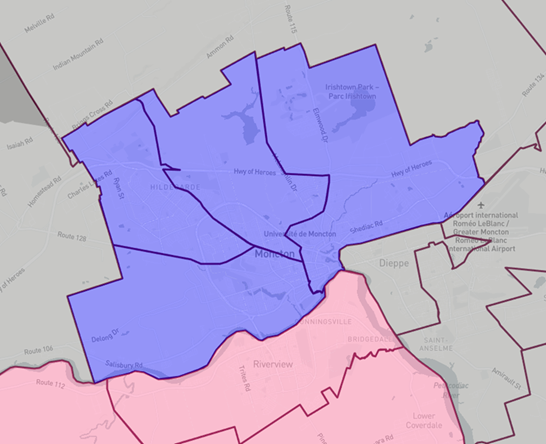 - Consisting of the entirety of the city of Moncton in Westmoreland County