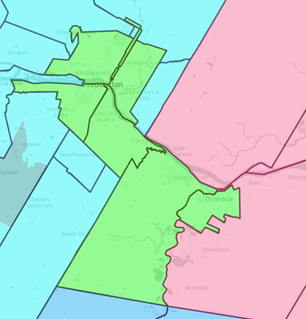 - Consisting of the entirety of the City of Fredericton and Saint Mary's First Nation in York County;