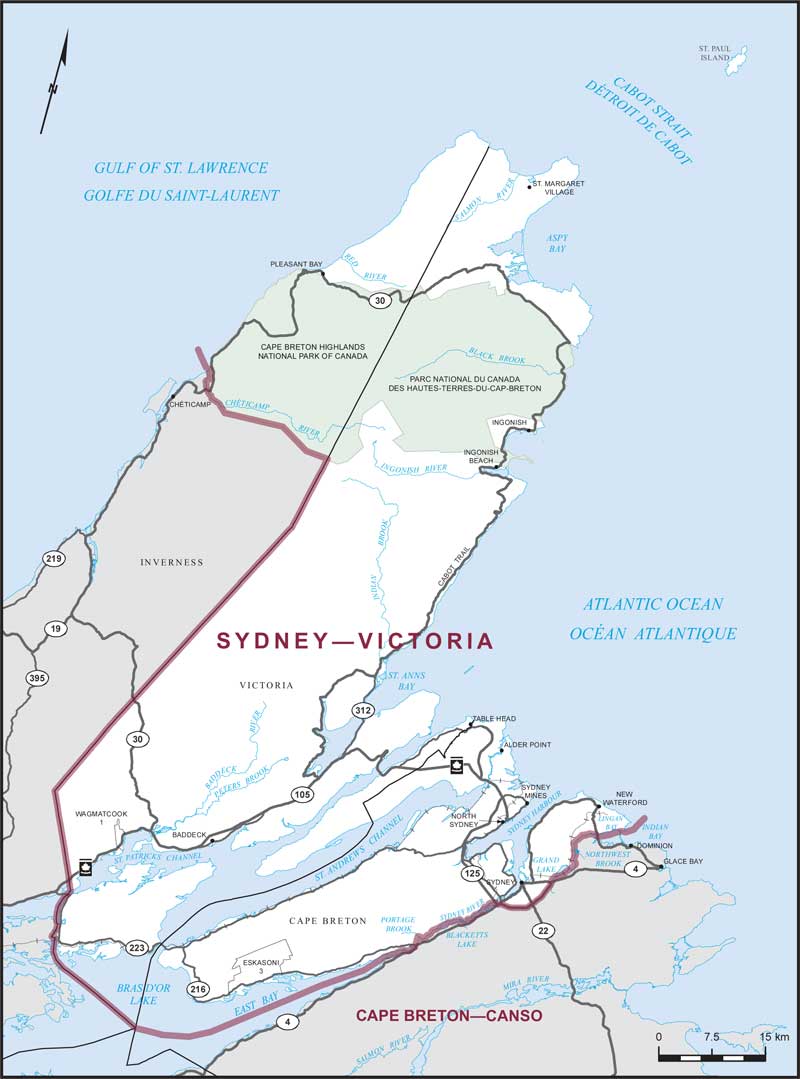 - b) la partie du comté d’Inverness située au nord de la limite sud du parc national du Canada des Hautes-Terres-du-Cap-Breton;