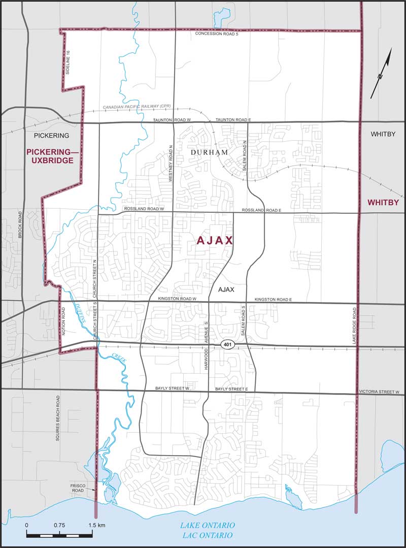 Comprend la partie de la municipalité régionale de Durham constituée de la ville d'Ajax.