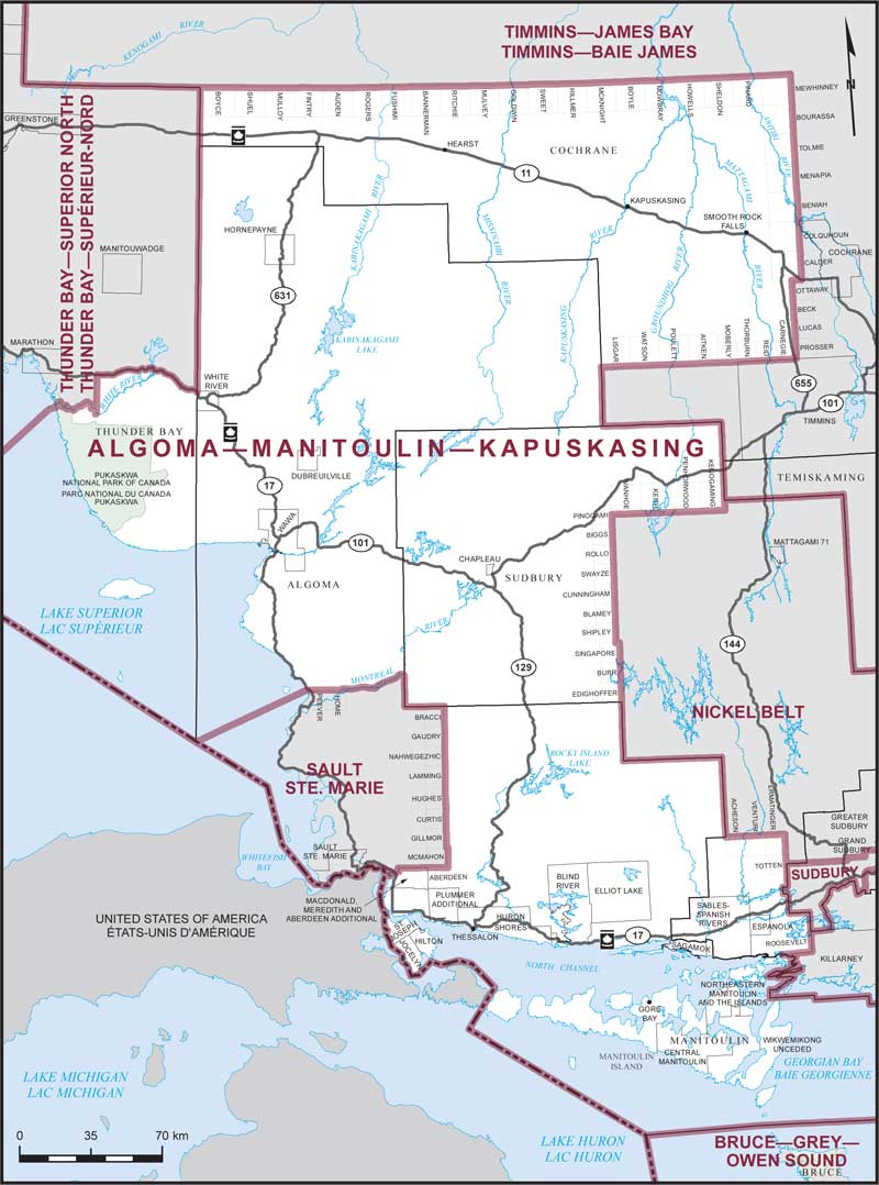 Algoma–Manitoulin–Kapuskasing – Limites actuelles