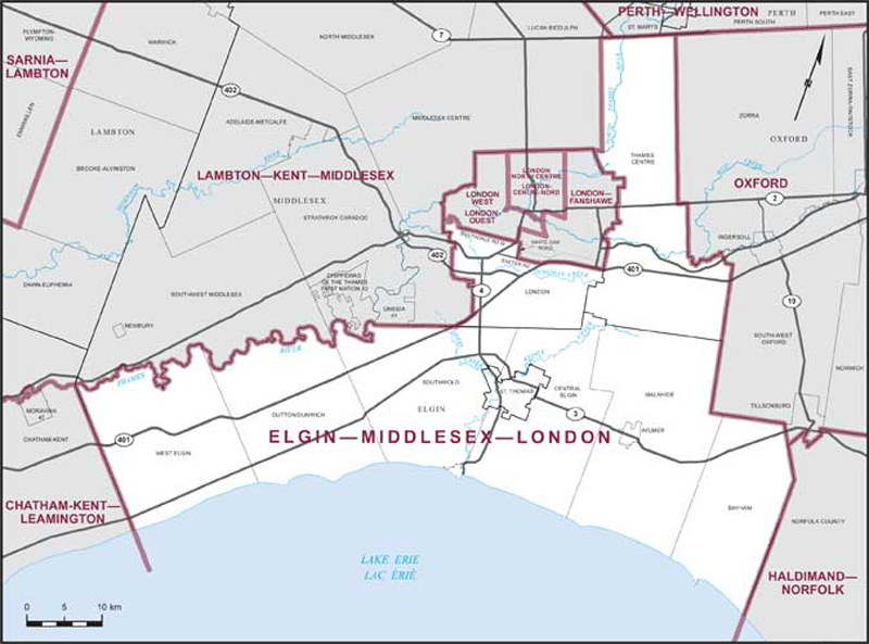 Elgin–Middlesex–London – Limites actuelles