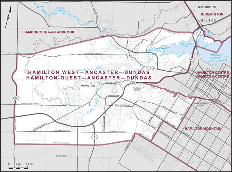 Hamilton-Ouest–Ancaster–Dundas – Limites actuelles