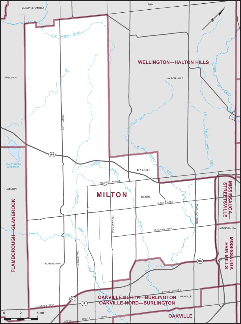 Comprend la partie de la municipalité régionale de Halton constituée :