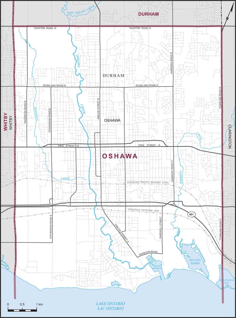 Comprend la partie de la municipalité régionale de Durham constituée de la partie de la ville d'Oshawa située au sud du chemin Taunton Ouest et du chemin Taunton Est.