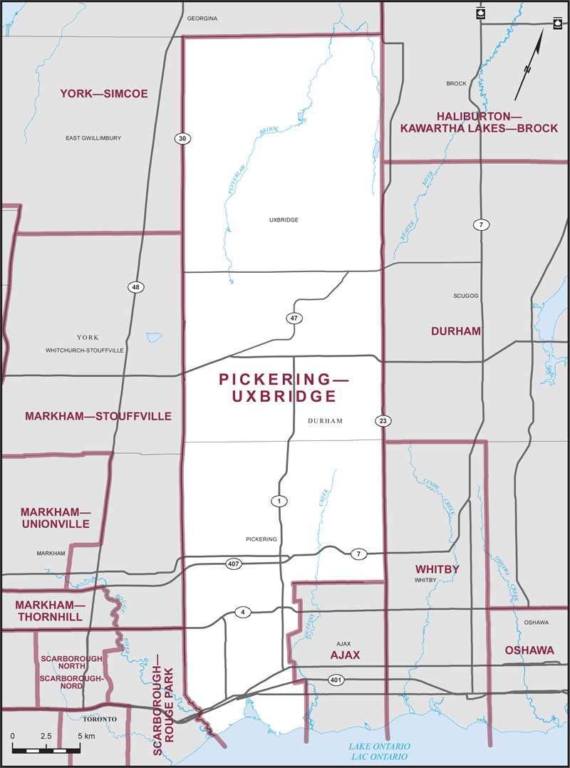 Comprend la partie de la municipalité régionale de Durham constituée : de la ville de Pickering; du canton d’Uxbridge.