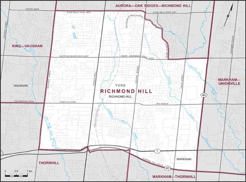 - a) de la partie de la ville de Richmond Hill située au sud d’une ligne décrite comme suit : commençant à l’intersection de la limite ouest de ladite ville et le chemin Elgin Mills Ouest; de là vers l’est suivant ledit chemin et le chemin Elgin Mills Est jusqu’à l’avenue Bayview; de là vers le sud suivant ladite avenue jusqu’au ruisseau sans nom situé au nord de la promenade Taylor Mills Nord; de là généralement vers l’est suivant ledit ruisseau jusqu’à la promenade Shirley; de là généralement vers le sud suivant ladite promenade jusqu’à la promenade Major Mackenzie Est; de là vers l’est suivant ladite promenade jusqu’à la limite est de ladite ville;