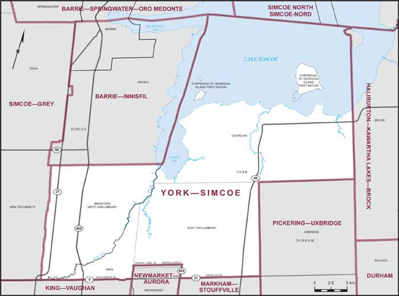 - c) la partie du comté de Simcoe constituée de la ville de Bradford West Gwillimbury.