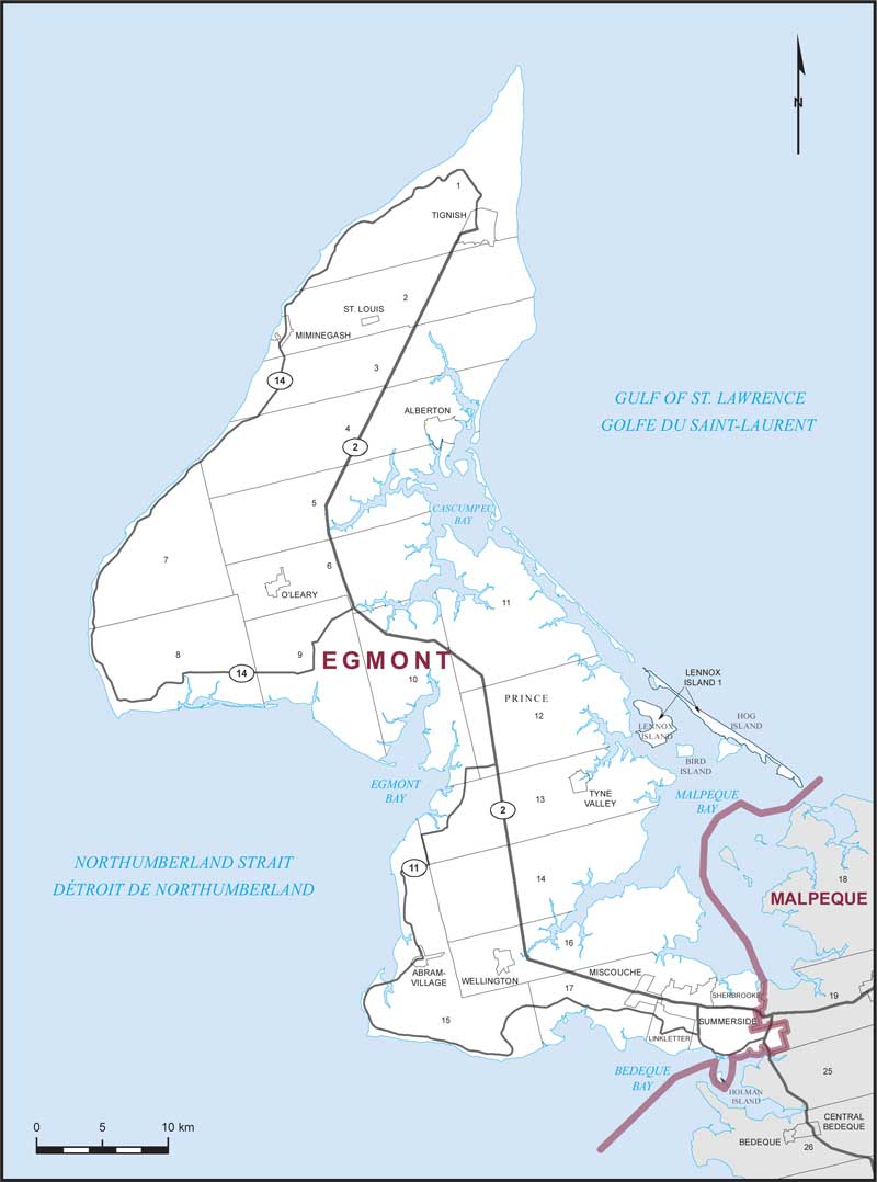 - a) la partie du comté de Prince constituée : des lots 1 à 17 inclusivement; de la communauté de Sherbrooke; de la ville de Summerside; de la réserve indienne de Lennox Island no 1;