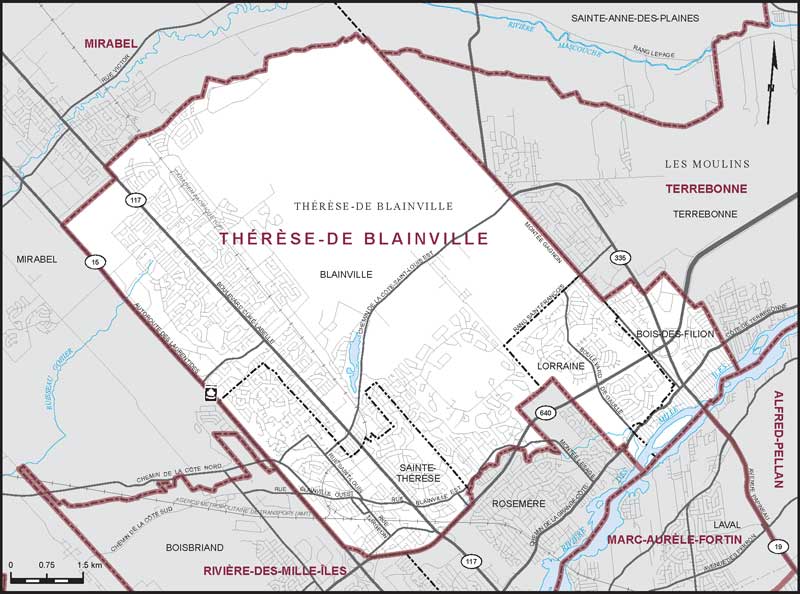 Consisting of that part of the Regional County Municipality of Thérèse-De Blainville comprised of the cities of Blainville, Bois-des-Filion, Lorraine and Sainte-Thérèse.