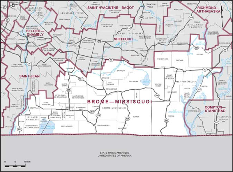 - (c) that part of the Regional County Municipality of Memphrémagog comprised of: the City of Magog; the Village Municipality of Stukely-Sud; the municipalities of Austin, Bolton-Est, Eastman, Saint-Benoît-du-Lac and Saint-Étienne-de-Bolton; the township municipalities of Potton and Orford.
