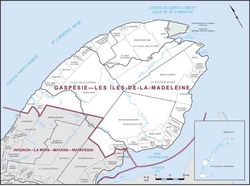 Gaspésie–Les Îles-de-la-Madeleine – Existing boundaries