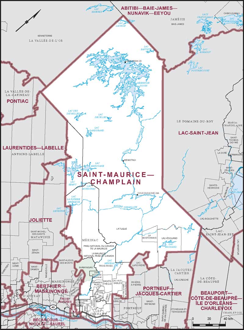 - (c) the Equivalent Territory of La Tuque, including Communauté de Wemotaci Indian Reserve, Coucoucache Indian Reserve No. 24A and Obedjiwan Indian Reserve No. 28;